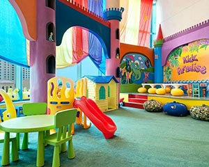 Дети в возрасте от 4 до 12 лет могут посещать контролируемые мероприятия в Kidz Pardise, расположенном на 3-м этаже отеля Hilton Dubai Jumeirah .
